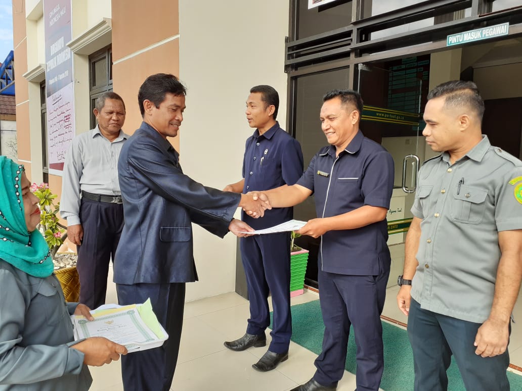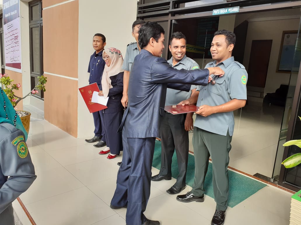 Penyerahan piagam penghargaan ini dilakukan bertepatan dengan apel pagi yang diikuti oleh seluruh Hakim dan Pegawai PA Tual, yang mengambil tempat di halaman kantor PA Tual.