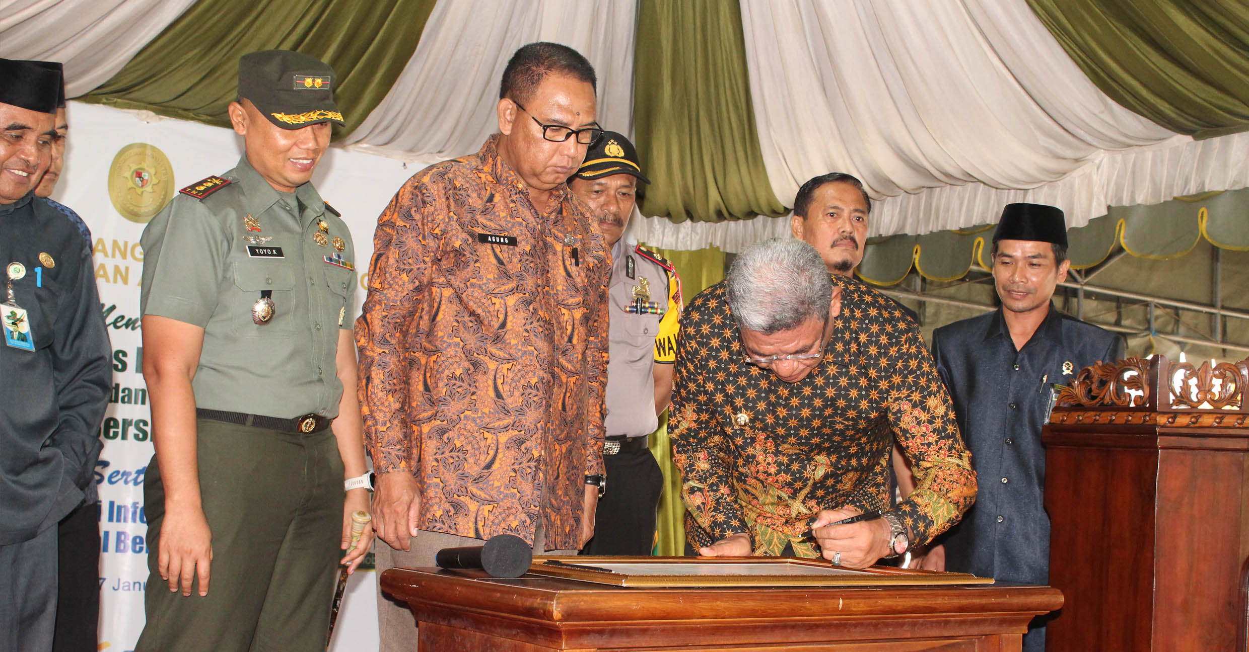 Penandatanganan Piagam Zona Integritas oleh Bupati Maluku Tenggara Drs. H. Muhammad Thaher Hanubun, sebagai saksi dan diikuti oleh saksi lainnya.
