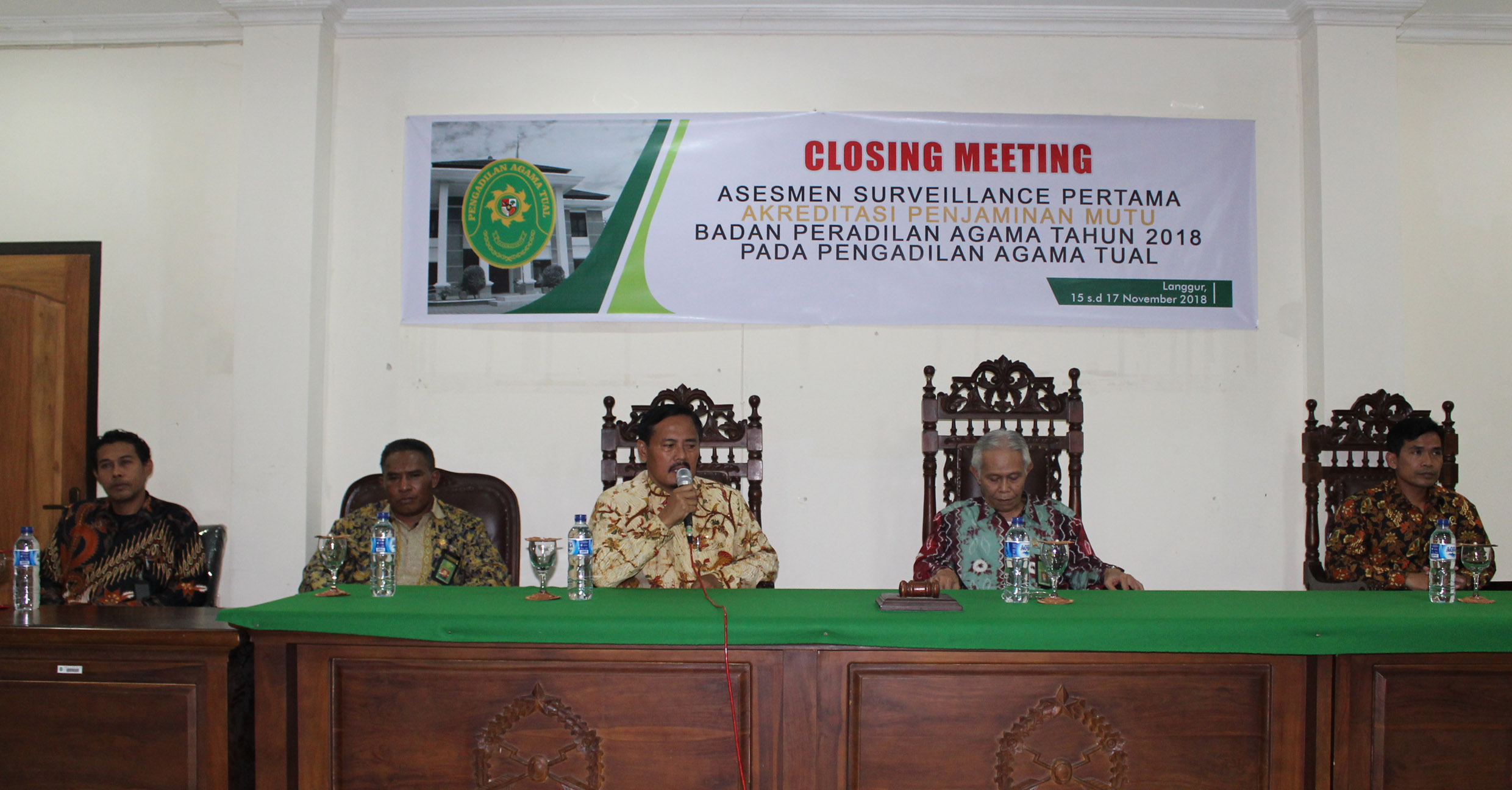Setelah memberikan pengarahan dan pembinaan, Wakil Ketua PTA Ambon menutup kegiatan Asesmen Surveillance Pertama PA Tual Tahun 2018.