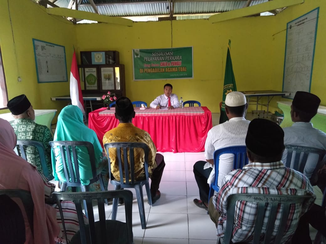 (Selasa, 08/05/2018), CPNS/CAKIM Mahkamah Agung yang ditempatkan di satuan kerja Pengadilan Agama Tual lakukan sosialisasi pelayanan perkara yang bebas calo dan pungli dihadapan masyarakat Desa Ohai Dian Pulau, Kecamatan Hoat Sorbay, Kabupaten Maluku Tenggara. Dalam kegiatan sosialisasi ini, CPNS/Cakim didampingi langsung oleh bapak/ ibu hakim Pengadilan Agama Tual, yaitu Syarifa Saimima, S.H.I., Wawan Jamal, S.H.I., Nengah Ahmad Nurkholis, S.E.I., dan beberapa pegawai antara lain Dra. Sitti Nahma Tuankotta, Hasan Karubun dan lainnya.