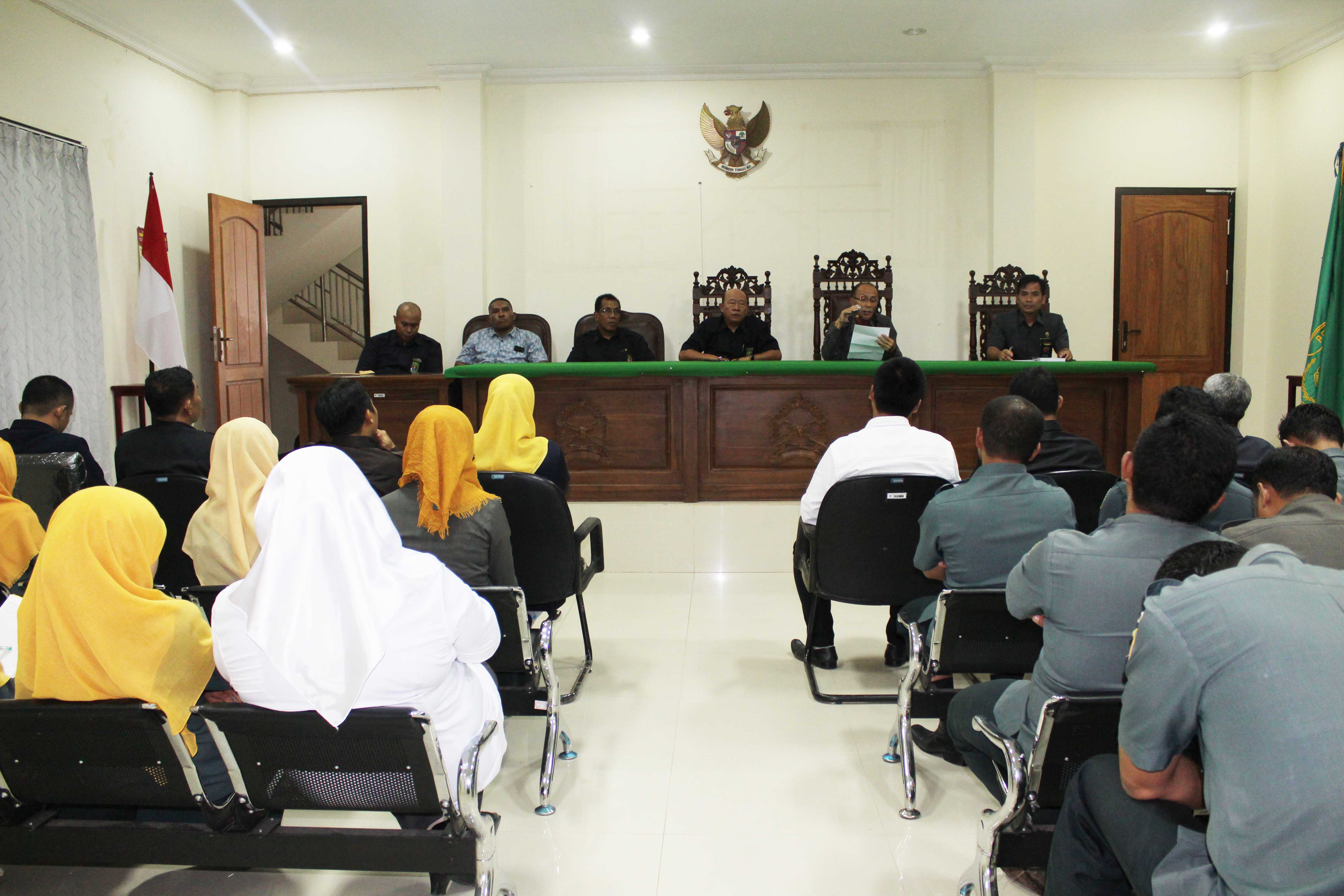 Seluruh Hakim, Pejabat & Pegawai PA Tual mendengarkan Hasil Temuan yang dibacakan oleh ketua Tim.